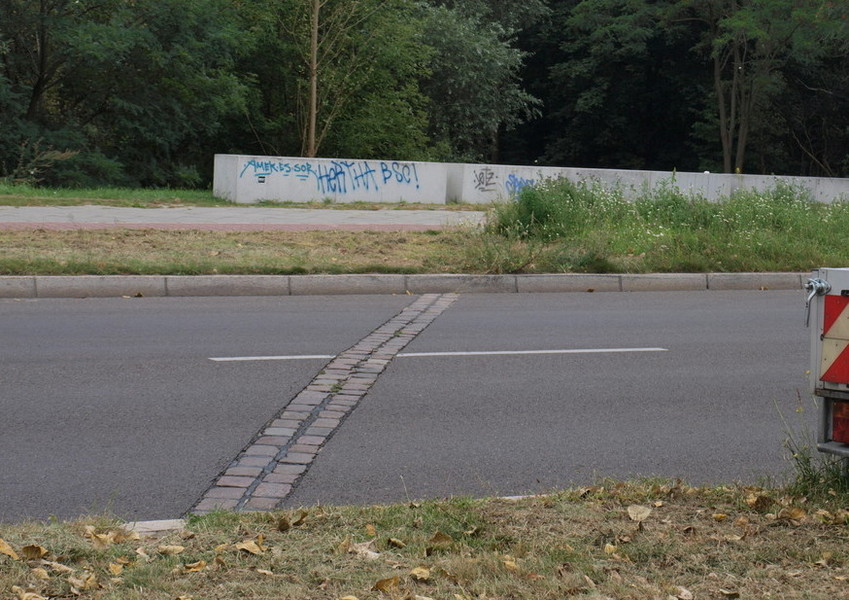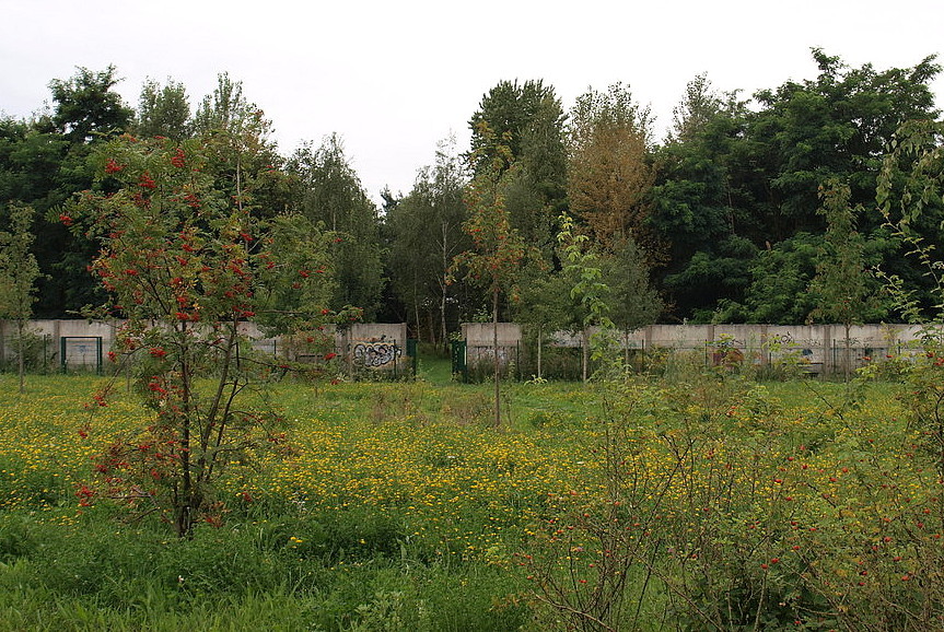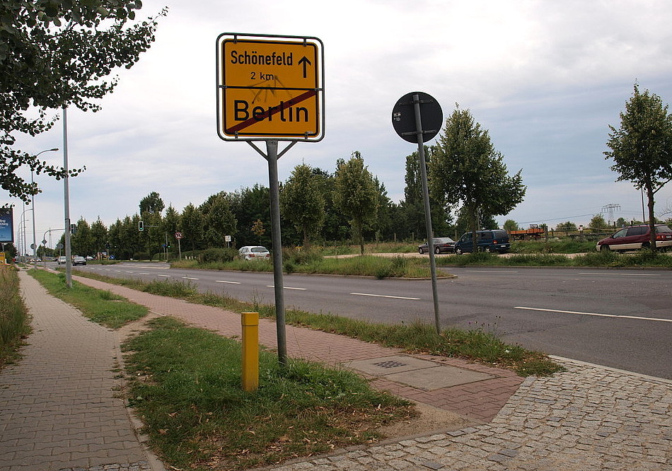 Jetzt verläuft der Weg nicht mehr zwischen West- und Ost-Berlin bzw. Neukölln und Köpenick, sondern zwischen (West)Berlin und Umland. Rechts Rudow, links Brandenburg.